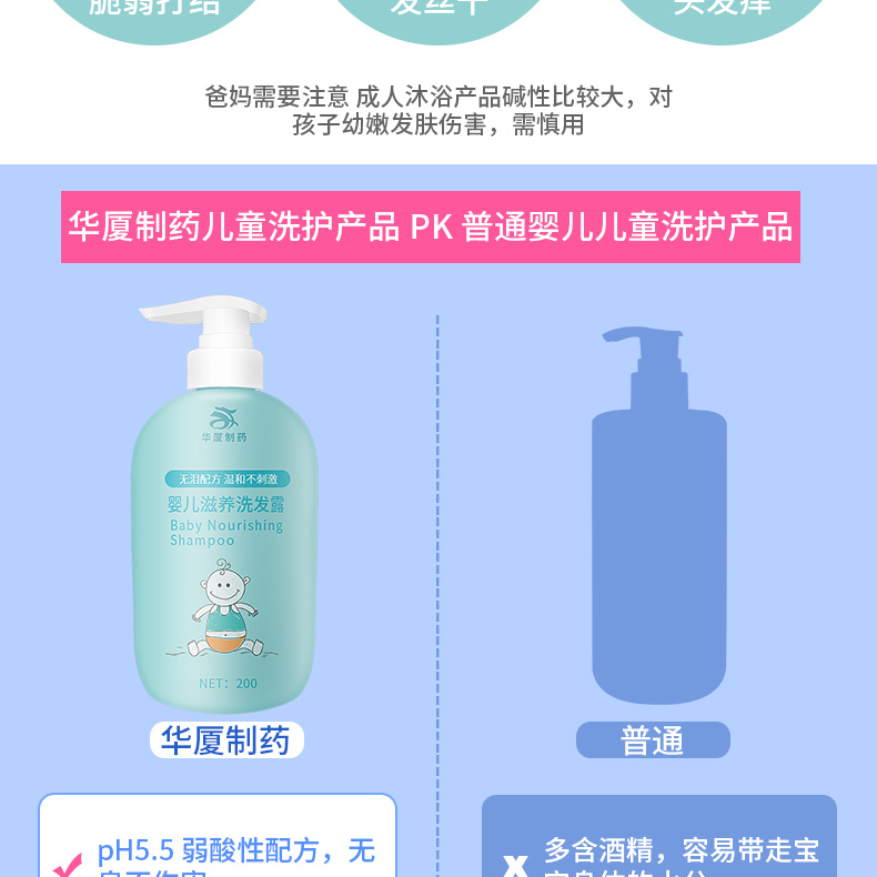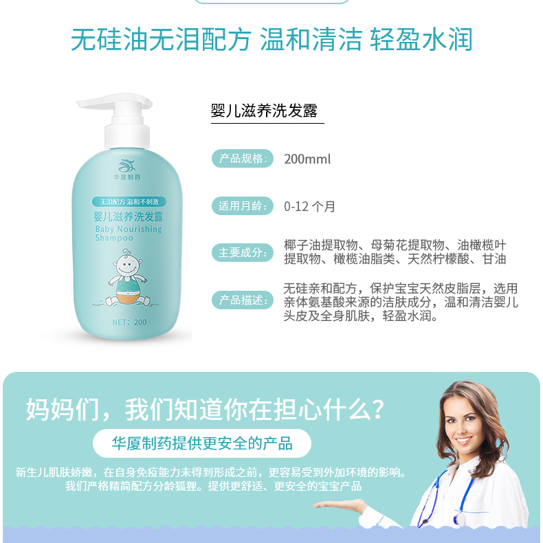華廈牌嬰幼兒洗發(fā)露采用無硅油無淚配方,呵護(hù)寶寶肌膚皮脂,溫和護(hù)理幼嫩肌膚。其添加植物
