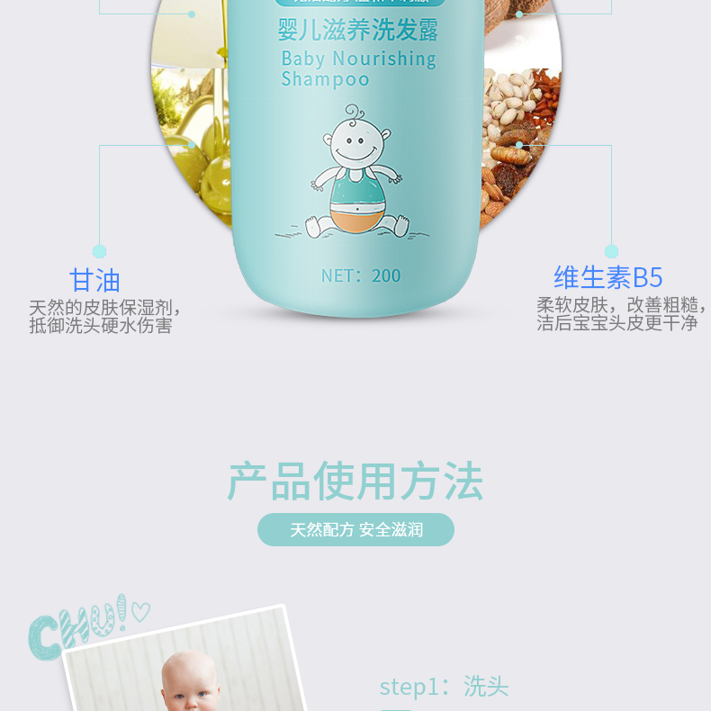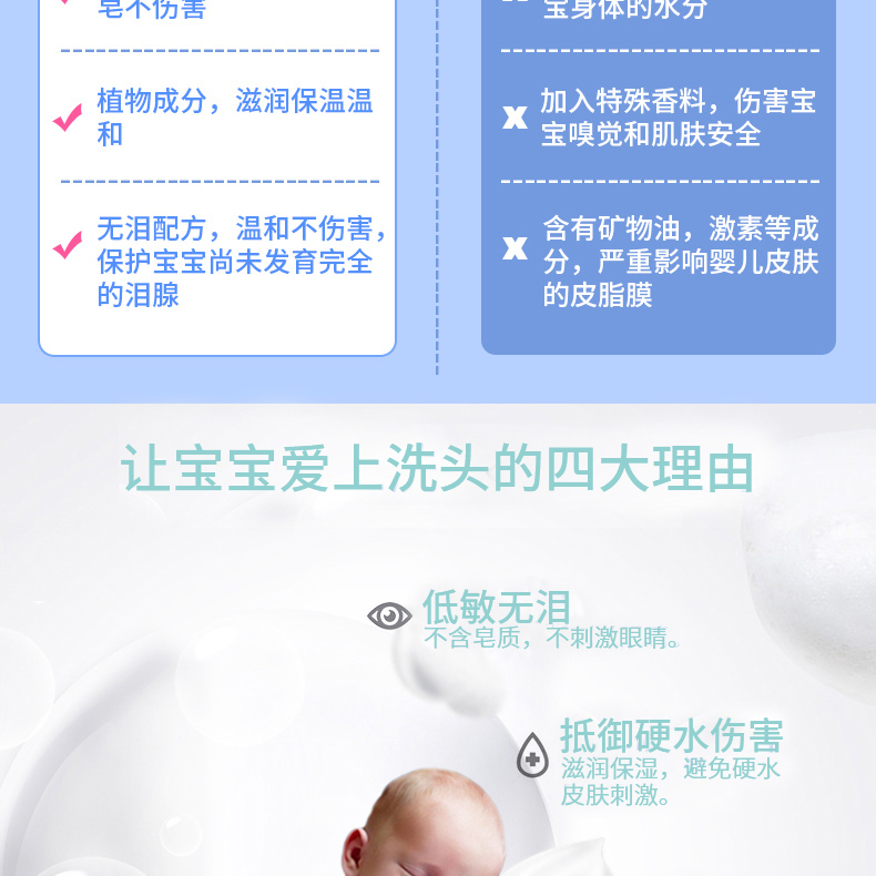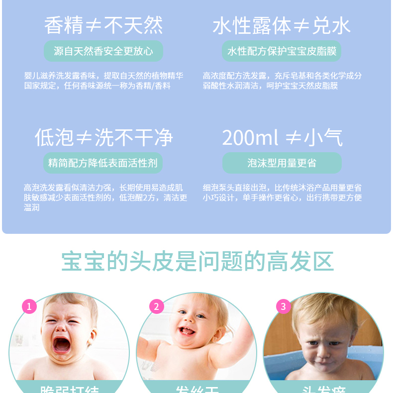 同時(shí)也能更好地清潔皮膚,含有無淚配方的嬰幼兒洗發(fā)露不僅對眼睛沒有任何刺激,還能有效保護(hù)頭