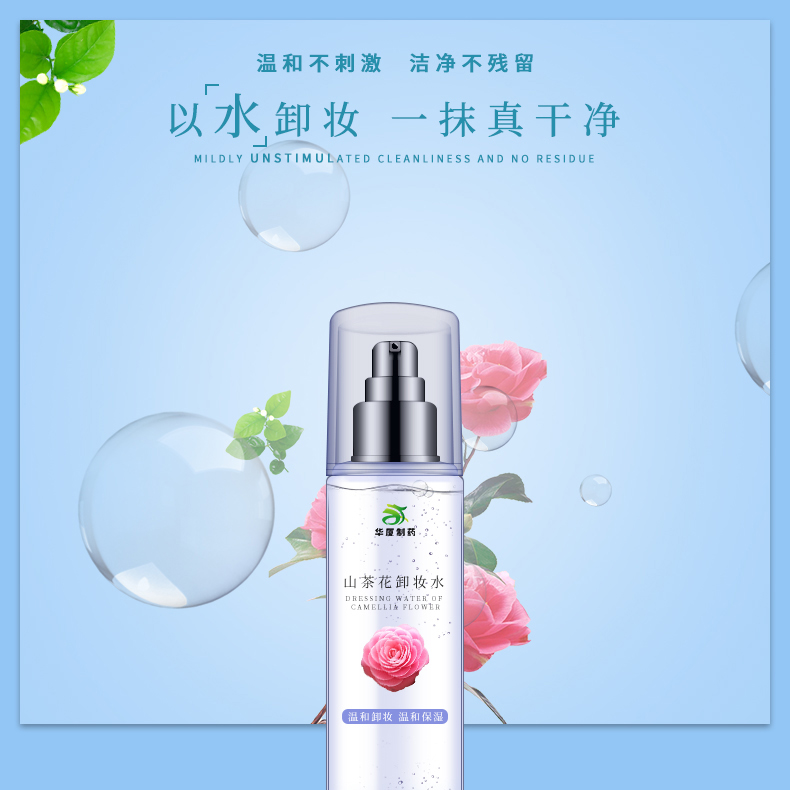 山茶花卸妝水由廣州華廈生物制藥有限公司出品,內(nèi)含水溶及油溶份子可全面洗凈肌膚毛孔內(nèi)外污垢,再加上山茶花植物精華,用後絕不繃緊。成份簡單,不含香料,敏感肌膚亦可使用.