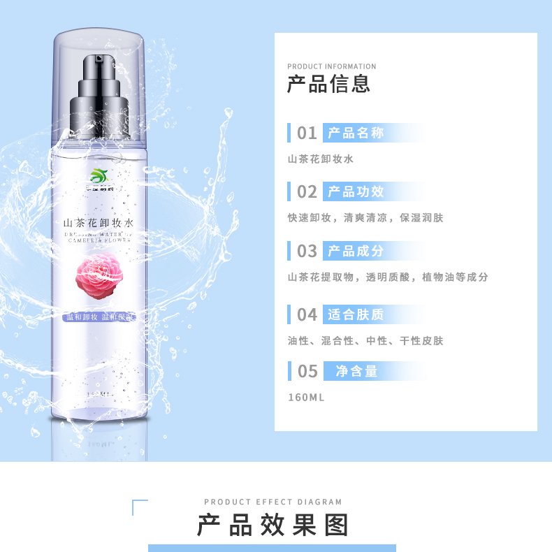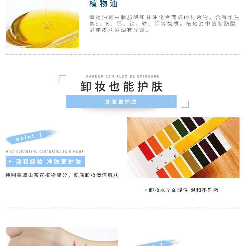 山茶花卸妝水不含皂基,PH值5,呈弱酸性,改善皮脂氧化變硬,阻塞毛孔等油性問題肌膚狀況。