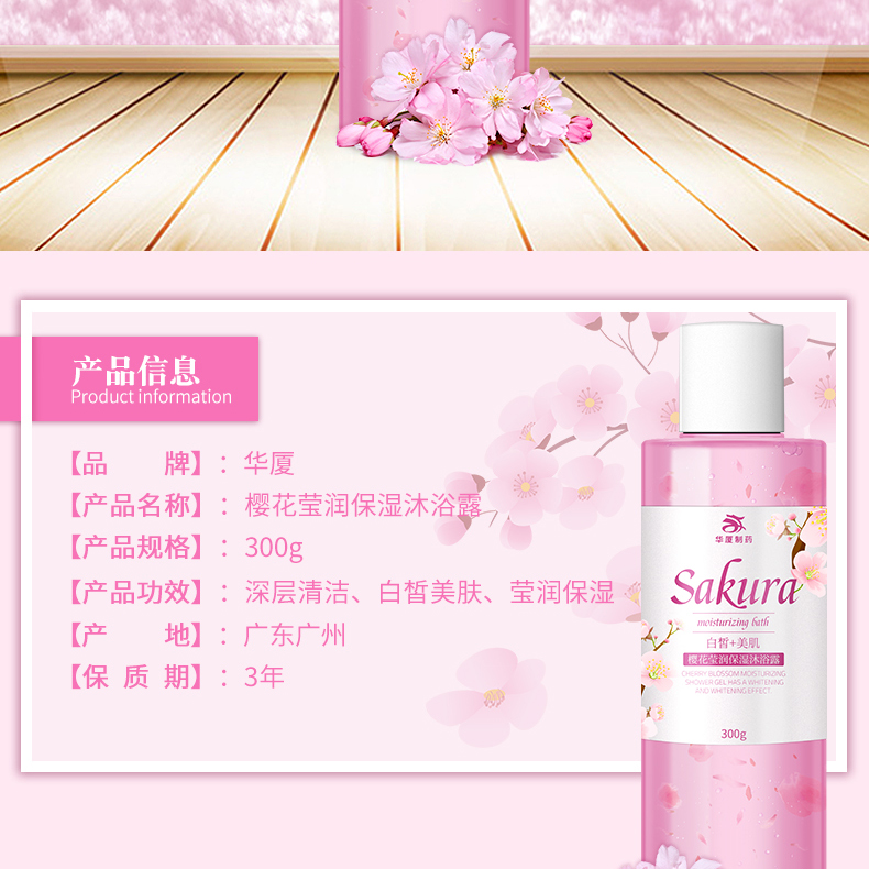 華廈櫻花瑩潤(rùn)保濕沐浴露內(nèi)含保濕因子,如紙一樣柔軟輕盈、芳香宜人,遇水可完全溶化,PH值弱酸性,內(nèi)含花卉精油能促進(jìn)肌膚新生代謝,細(xì)致毛孔,對(duì)于肌膚干燥有高度的滋潤(rùn)效果,能平衡身體水油,能迅速有效地深入肌膚,促使全身血液循環(huán),刺激大腦,消除疲勞。