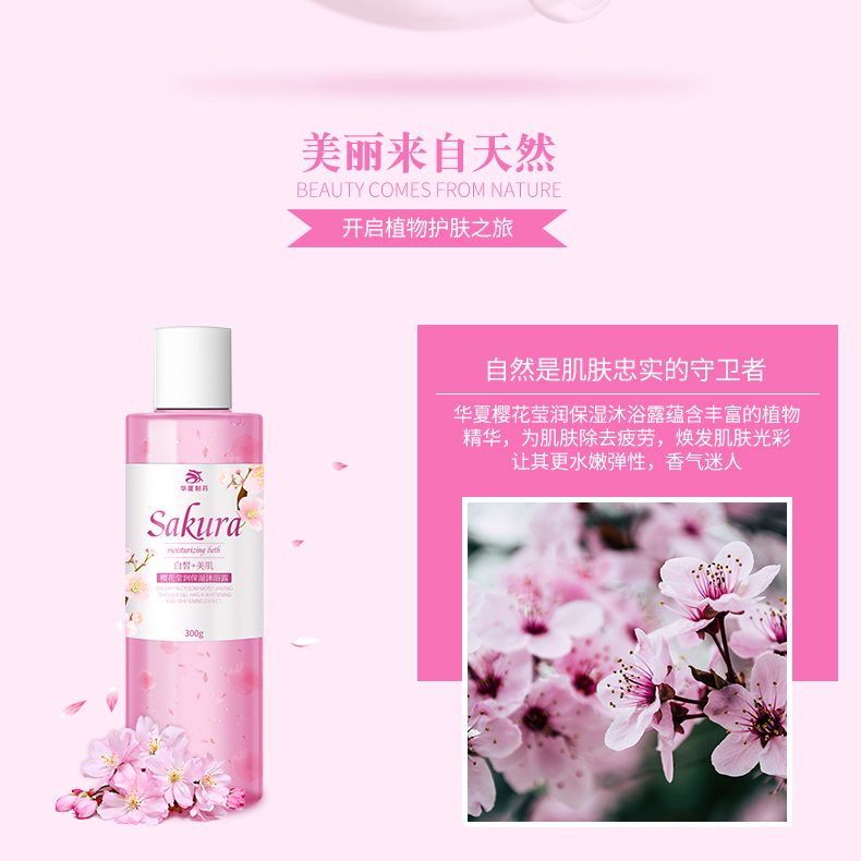 華廈櫻花瑩潤(rùn)保濕沐浴露所使用原料全為天然食品級(jí),無(wú)毒安全,能有效抑制有害細(xì)菌的滋長(zhǎng),增長(zhǎng)你的免疫能力。享受花瓣沐浴的香薰,增加沐浴情趣,讓你的肌膚更滋潤(rùn)光滑。